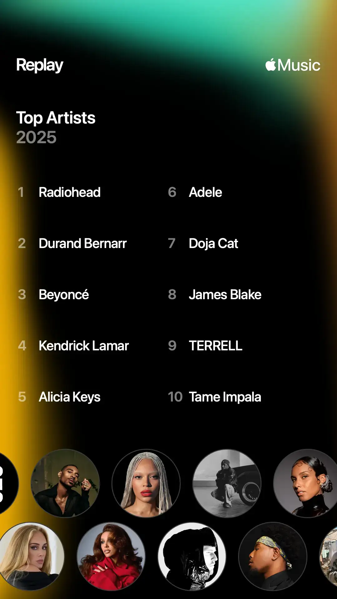 Durand Bernarr was my second-most-listened artist, and once again, I’m not shocked. He released BLOOM which took over my May, but he’s always been someone I revisit a lot. His Tiny Desk Concert is one of my all-time favourites, along with his many appearances on The TERRELL Show. Now that I’ve mentioned Terrell: y’all need to seriously listen to The Terrell One Million Show or watch it. It’s rather amazing. There are so many great covers and mashups on there. My Testimony / Let Go by Kelontae Gavin and Masterpiece (Mona Lisa) by Riley are my favourites. The latter was on repeat so much that my parent now randomly sings it whenever someone mentions the name “Mona Lisa”.
