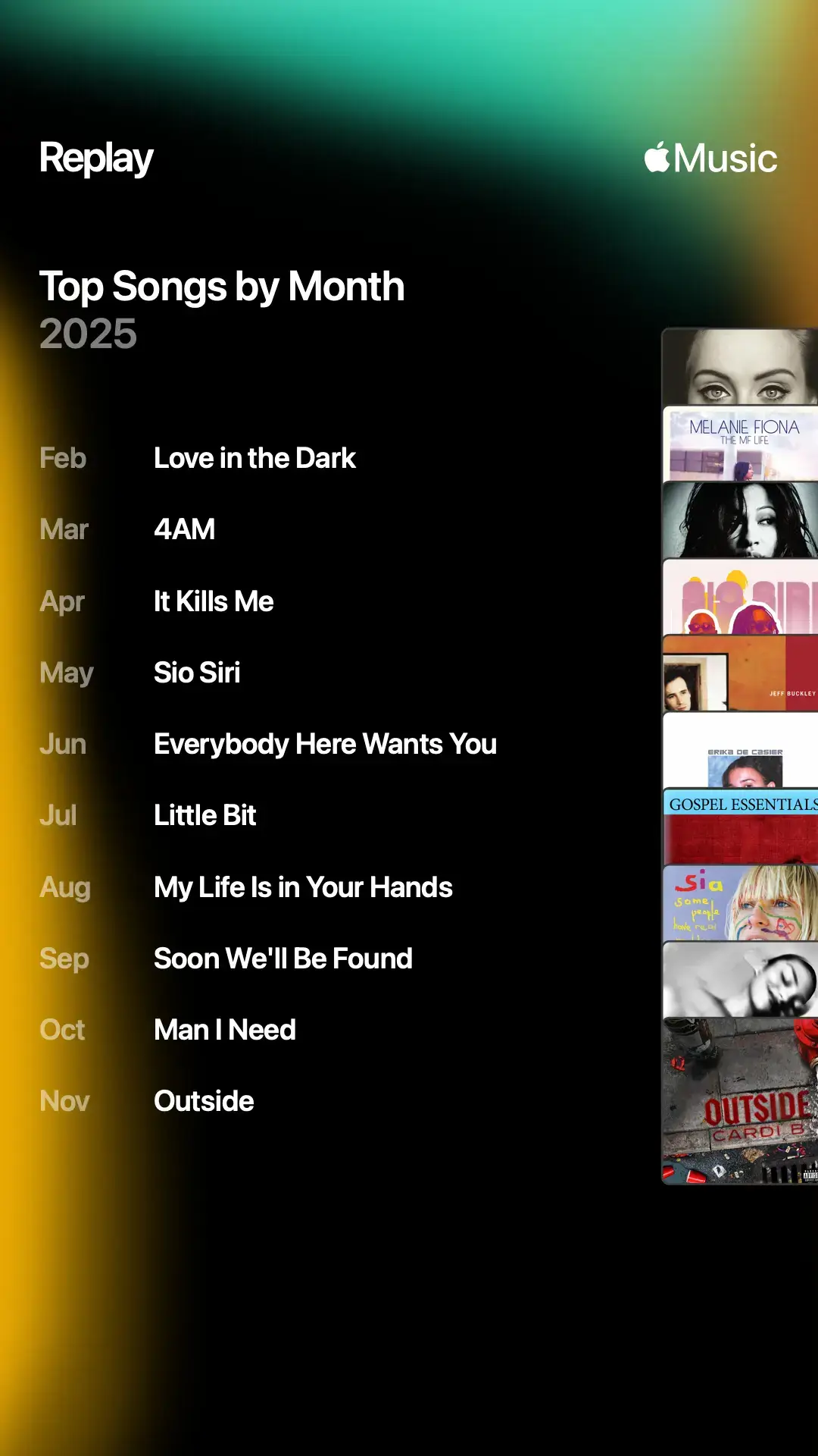 Melanie Fiona also had her moment in my year. Her appearance on the blue wall reminded me how incredible she is, and I ended up looping It Kills Me and 4AM in March and April… and apparently the entire year. She really had a grasp on the 2000s music scene, and it’s such a shame she never got the recognition she deserved.